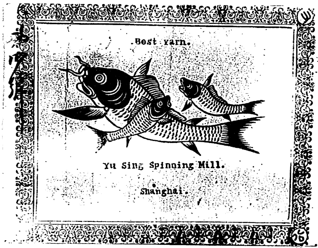 下記の藍色の魚を商標とした鐘淵紡績社(後に社名を略称の「カネボウ」と改称)製の綿糸は、中国国内市場を独占するほどの人気商品でした。